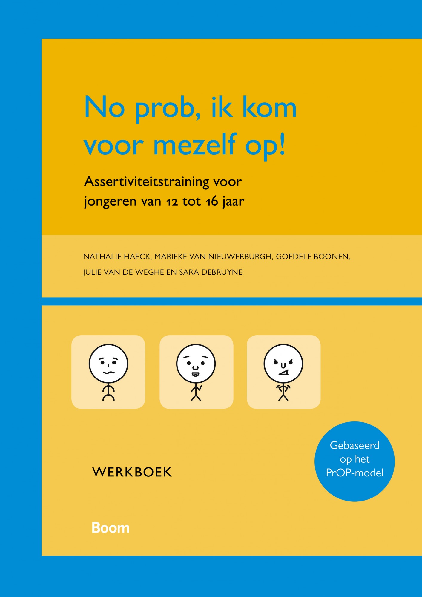No prob, ik kom voor mezelf op! bestaat uit een handleiding voor de trainer en een werkboek voor het kind. Het werkboek is ook los verkrijgbaar.
