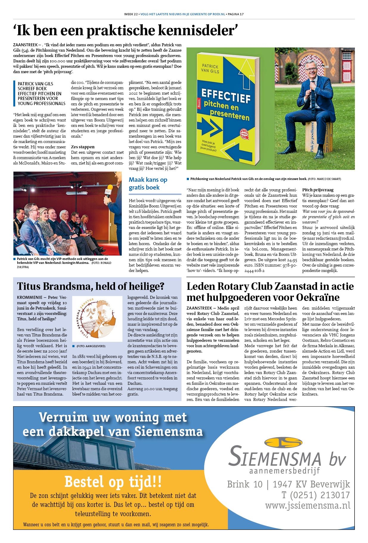 Patrick van Gils is geïnterviewd voor het Zaanse stadsblad. Wil je het artikel lezen? Dan kan hier.