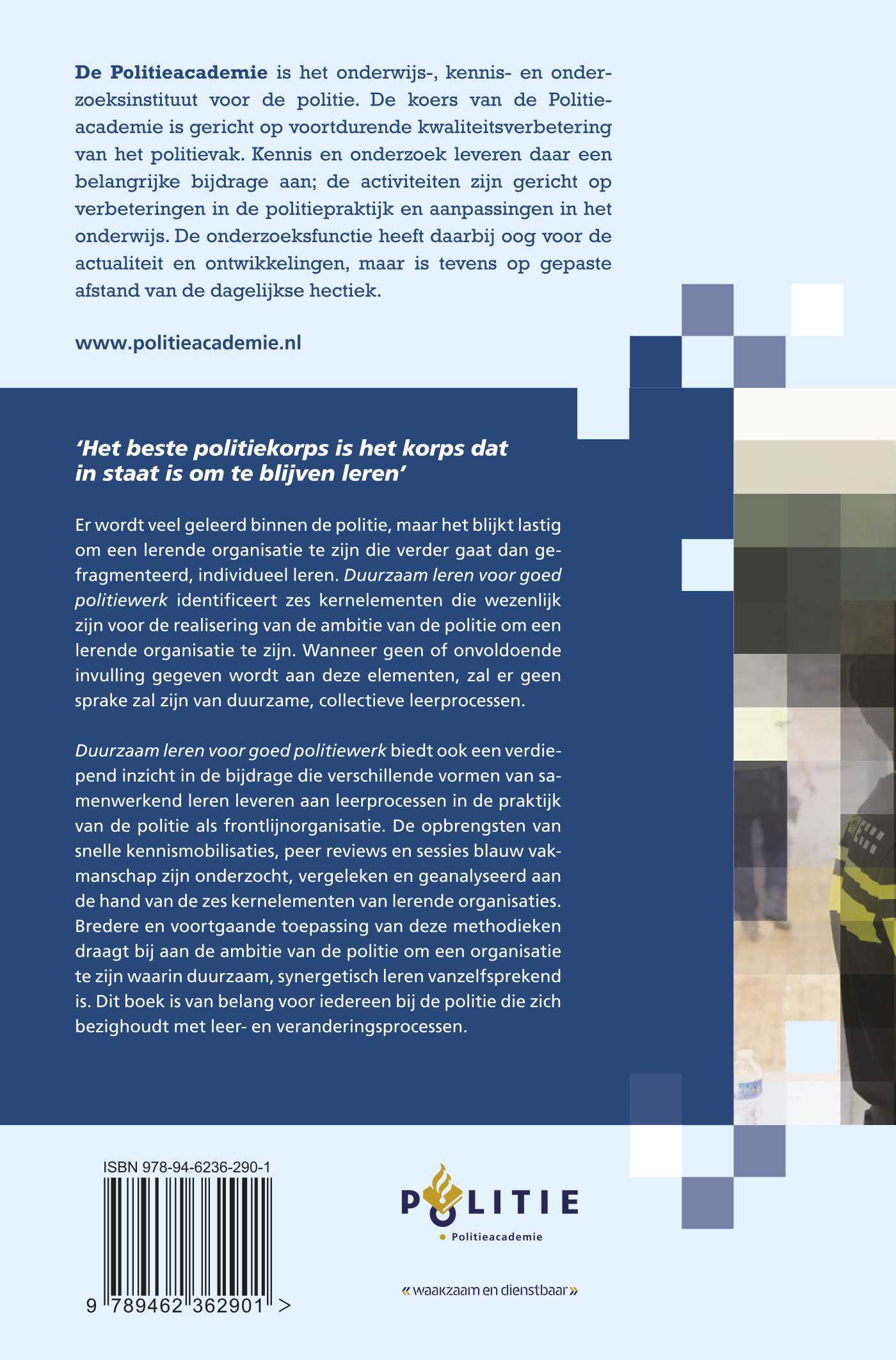 Duurzaam leren voor goed politiewerk biedt ook een verdiepend inzicht in de bijdrage die verschillende vormen van samenwerkend leren leveren aan leerprocessen in de praktijk van de politie als frontlijnorganisatie. De opbrengsten van snelle kennismobilisaties, peer reviews en sessies blauw vakmanschap zijn onderzocht, vergeleken en geanalyseerd aan de hand van de zes kernelementen van lerende organisaties. Bredere en voortgaande toepassing van deze methodieken draagt bij aan de ambitie van de politie om een organisatie te zijn waarin duurzaam, synergetisch leren vanzelfsprekend is. Dit boek is van belang voor iedereen bij de politie die zich bezighoudt met leer- en veranderingsprocessen.