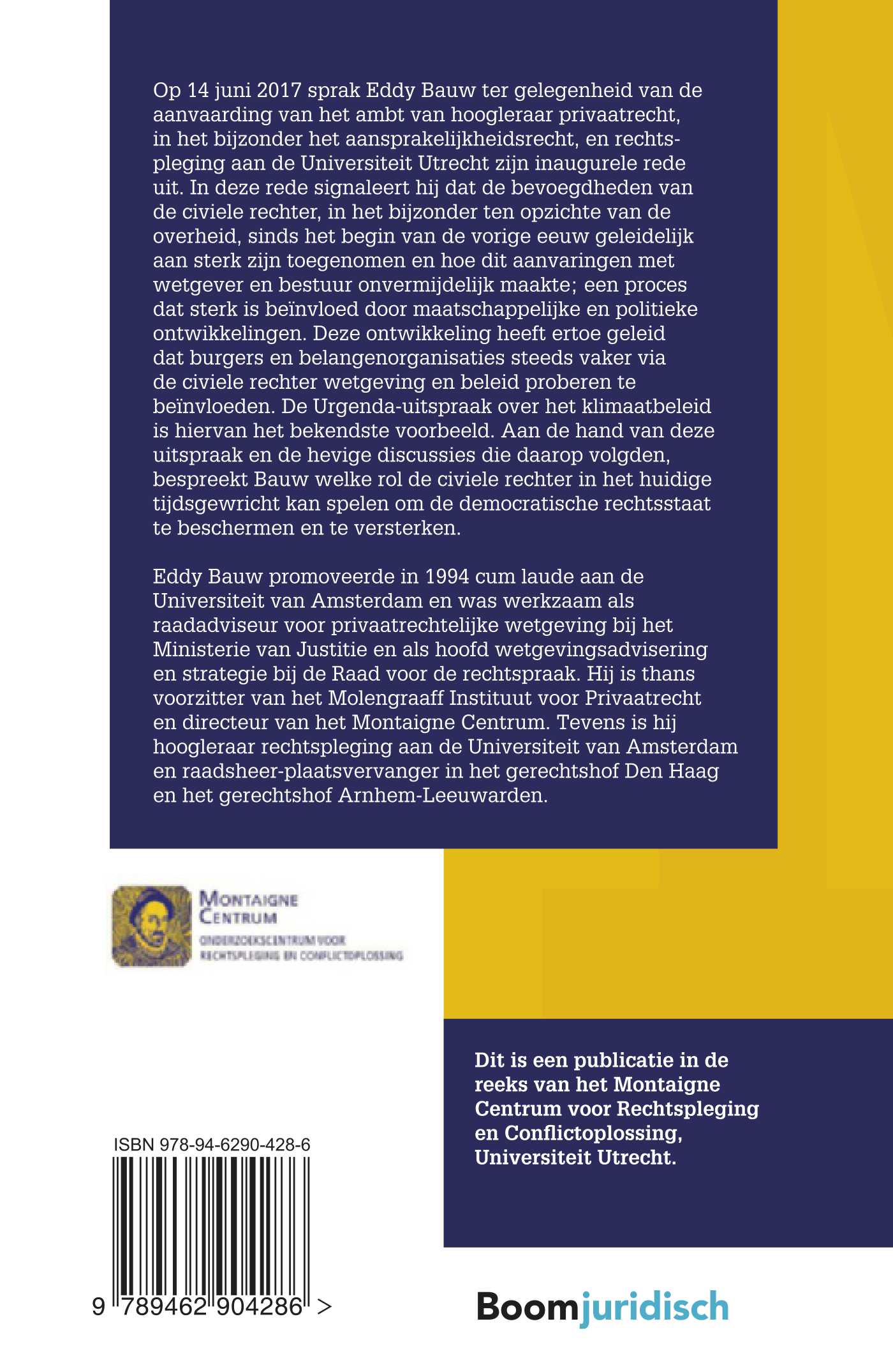 Op 14 juni 2017 sprak Eddy Bauw ter gelegenheid van de aanvaarding van het ambt van hoogleraar privaatrecht, in het bijzonder het aansprakelijkheidsrecht, en rechtspleging aan de Universiteit Utrecht zijn inaugurele rede uit. In deze rede signaleert hij dat de bevoegdheden van de civiele rechter, in het bijzonder ten opzichte van de overheid, sinds het begin van de vorige eeuw geleidelijk aan sterk zijn toegenomen en hoe dit aanvaringen met wetgever en bestuur onvermijdelijk maakte; een proces dat sterk is beïnvloed door maatschappelijke en politieke ontwikkelingen. Deze ontwikkeling heeft ertoe geleid dat burgers en belangenorganisaties steeds vaker via de civiele rechter wetgeving en beleid proberen te beïnvloeden. De Urgendauitspraak over het klimaatbeleid is hiervan het bekendste voorbeeld. Aan de hand van deze uitspraak en de hevige discussies die daarop volgden, bespreekt Bauw welke rol de civiele rechter in het huidige tijdsgewricht kan spelen om de democratische rechtsstaat te beschermen en te versterken.