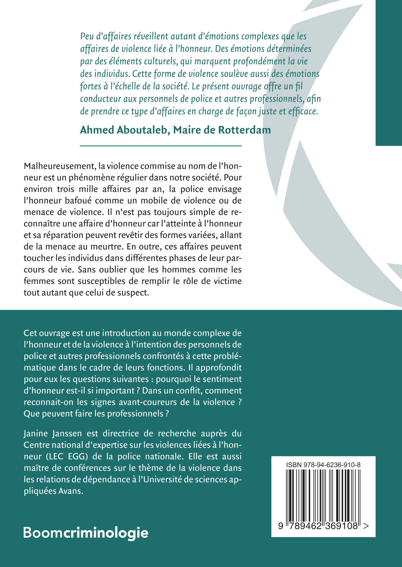Cet ouvrage est une introduction au monde complexe de l’honneur et de la violence à l’intention des personnels de police et autres professionnels confrontés à cette problématique dans le cadre de leurs fonctions. Il approfondit pour eux les questions suivantes : pourquoi le sentiment d’honneur est-il si important ? Dans un confl it, comment reconnait-on les signes avant-coureurs de la violence ? Que peuvent faire les professionnels ?