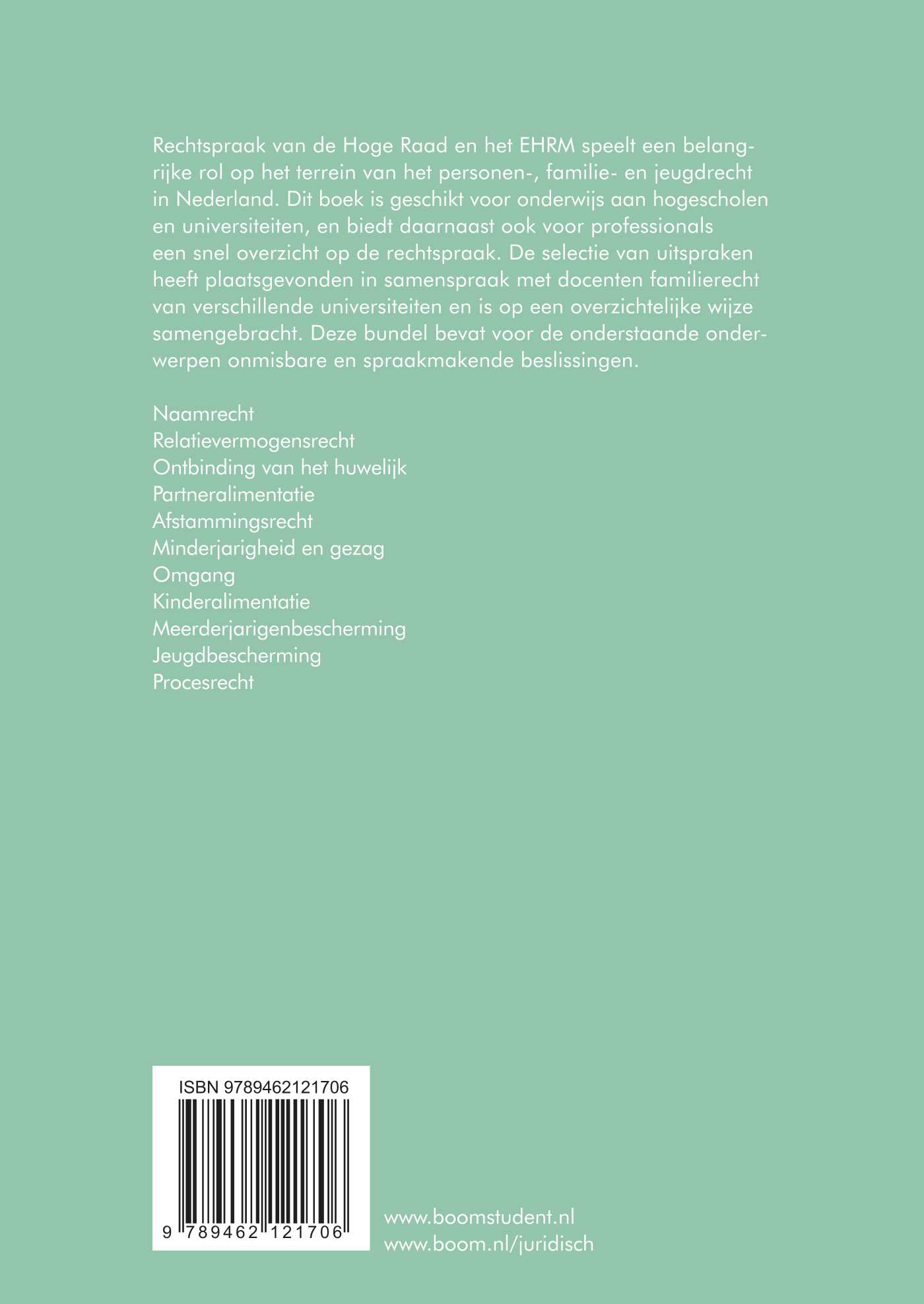Rechtspraak van de Hoge Raad en het EHRM speelt een belangrijke rol op het terrein van het personen-, familie- en jeugdrecht in Nederland. Dit boek is geschikt voor onderwijs aan hogescholen en universiteiten, en biedt daarnaast ook voor professionals een snel overzicht op de rechtspraak. De selectie van uitspraken heeft plaatsgevonden in samenspraak met docenten familierecht van verschillende universiteiten en is op een overzichtelijke wijze samengebracht. Deze bundel bevat voor de onderstaande onderwerpen onmisbare en spraakmakende beslissingen.