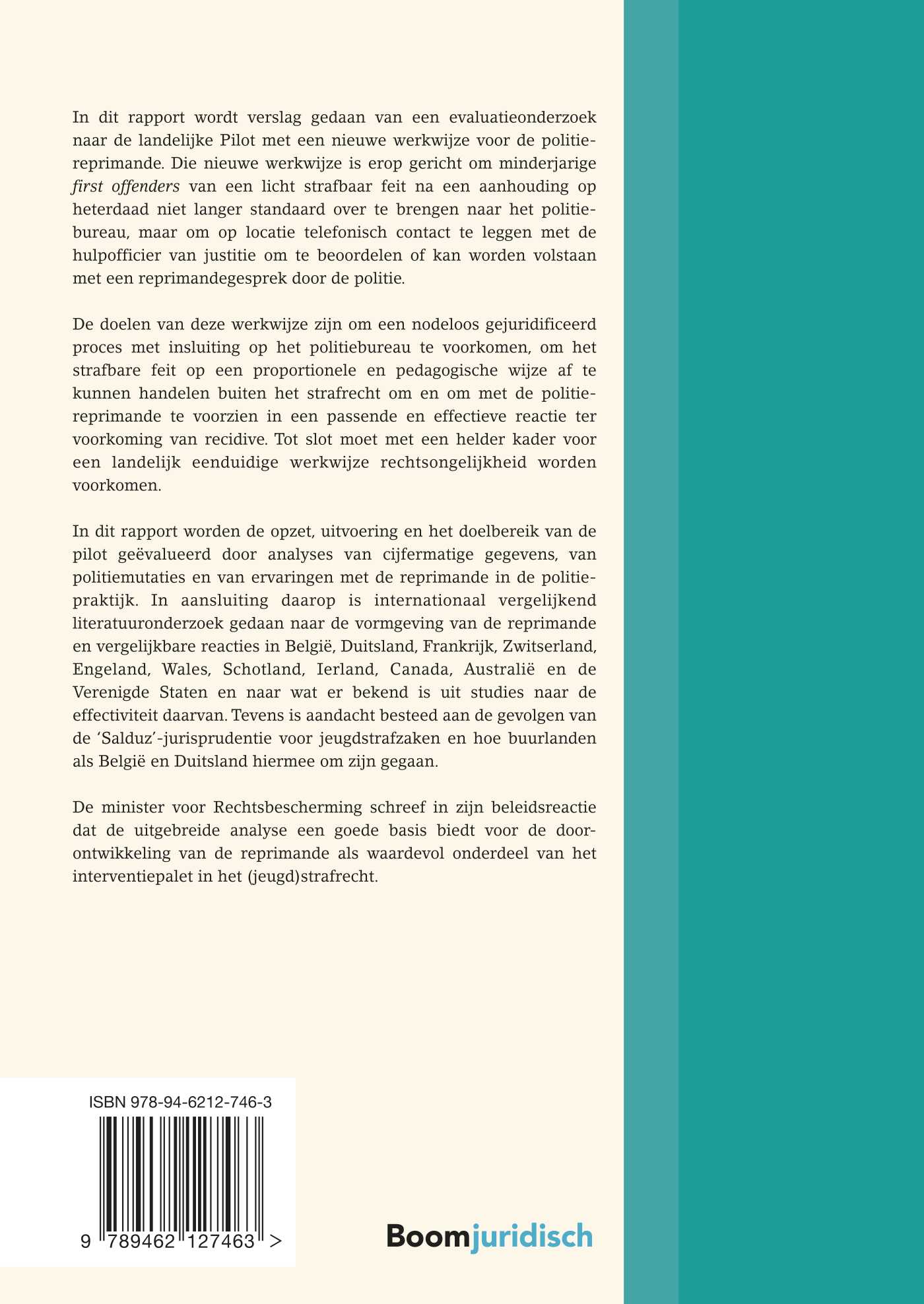 In dit rapport worden de opzet, uitvoering en het doelbereik van de pilot geëvalueerd door analyses van cijfermatige gegevens, van politiemutaties en van ervaringen met de reprimande in de politiepraktijk. In aansluiting daarop is internationaal vergelijkend literatuuronderzoek gedaan naar de vormgeving van de reprimande en vergelijkbare reacties in België, Duitsland, Frankrijk, Zwitserland, Engeland, Wales, Schotland, Ierland, Canada, Australië en de Verenigde Staten en naar wat er bekend is uit studies naar de effectiviteit daarvan. Tevens is aandacht besteed aan de gevolgen van de ‘Salduz’-jurisprudentie voor jeugdstrafzaken en hoe buurlanden als België en Duitsland hiermee om zijn gegaan.
