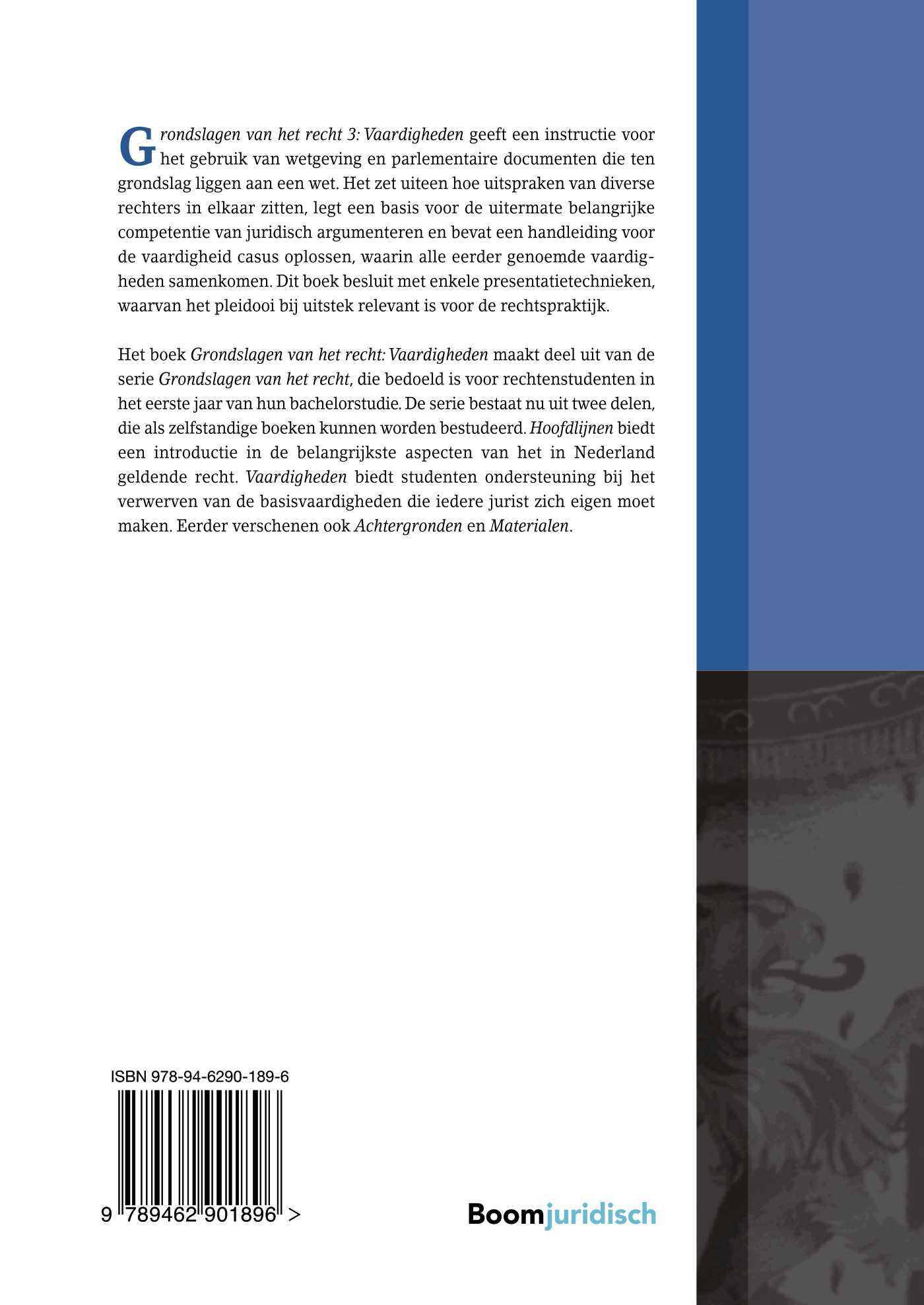 Het boek Grondslagen van het recht: Vaardigheden maakt deel uit van de serie Grondslagen van het recht, die bedoeld is voor rechtenstudenten in het eerste jaar van hun bachelorstudie. De serie bestaat nu uit twee delen, die als zelfstandige boeken kunnen worden bestudeerd. Hoofdlijnen biedt een introductie in de belangrijkste aspecten van het in Nederland geldende recht. Vaardigheden biedt studenten ondersteuning bij het verwerven van de basisvaardigheden die iedere jurist zich eigen moet maken. Eerder verschenen ook Achtergronden en Materialen.