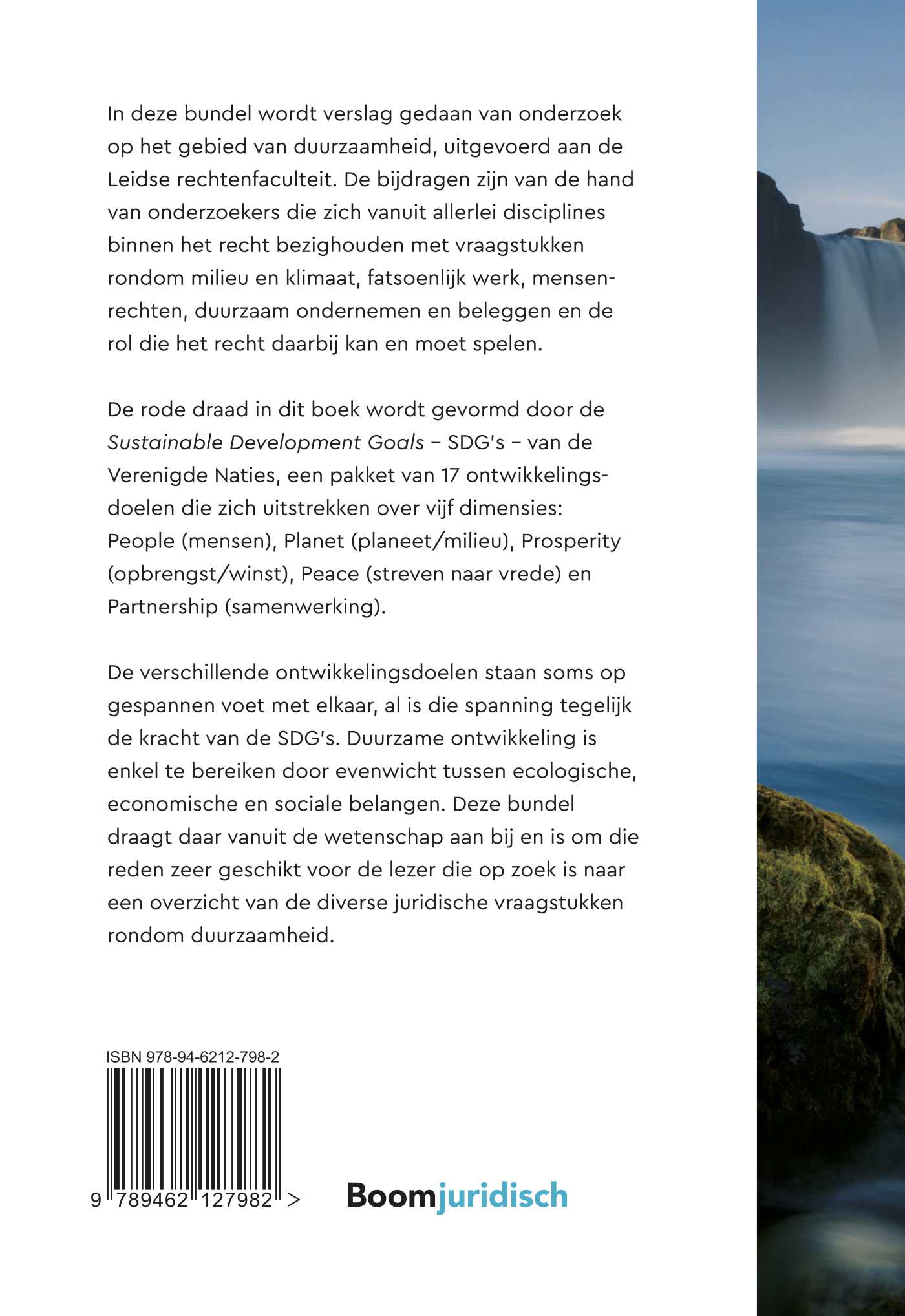 In deze bundel wordt verslag gedaan van onderzoek op het gebied van duurzaamheid, uitgevoerd aan de Leidse rechtenfaculteit. De bijdragen zijn van de hand van onderzoekers die zich vanuit allerlei disciplines binnen het recht bezighouden met vraagstukken rondom milieu en klimaat, fatsoenlijk werk, mensenrechten, duurzaam ondernemen en beleggen en de rol die het recht daarbij kan en moet spelen.