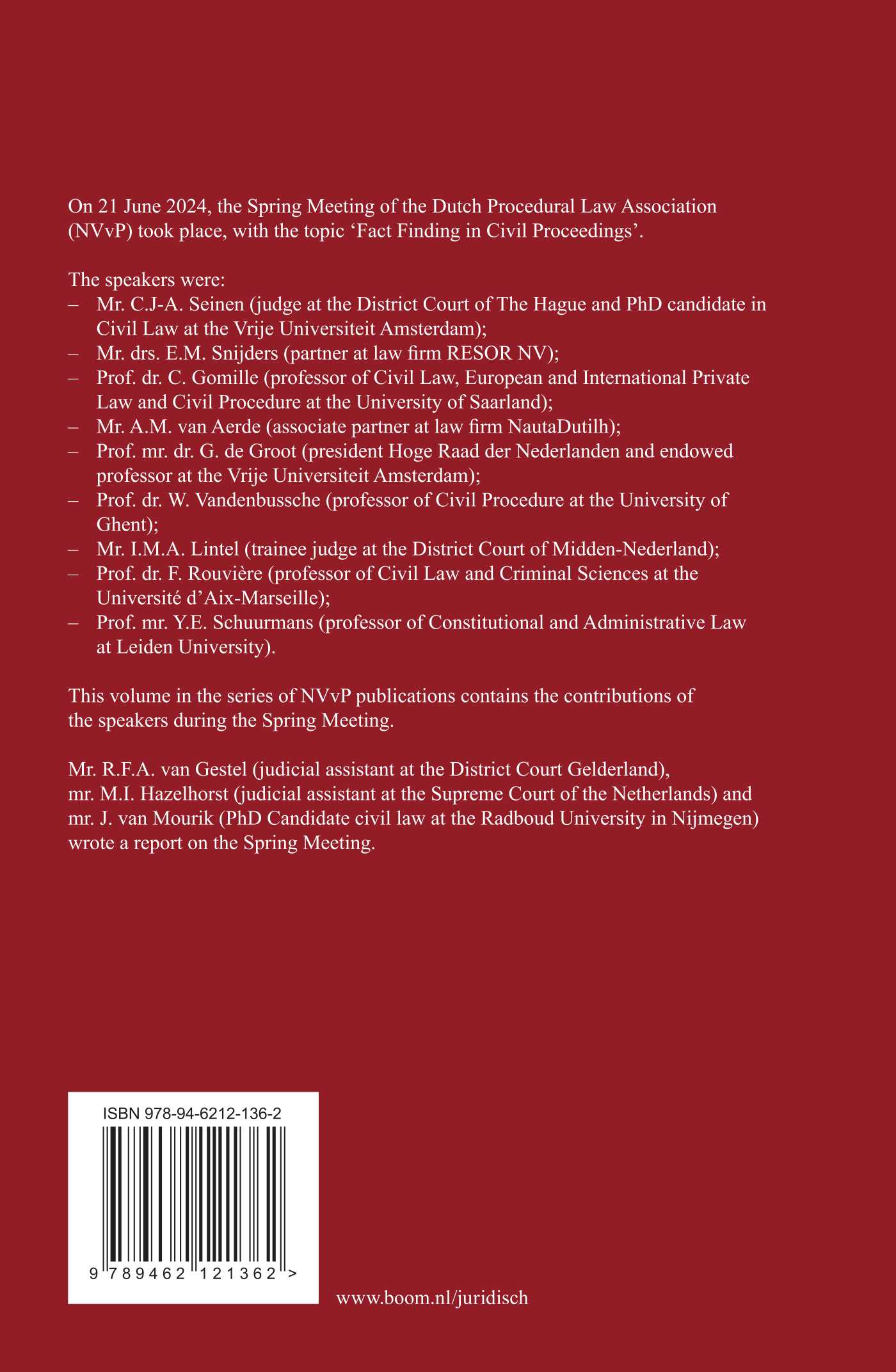 – Mr. C.J-A. Seinen (judge at the District Court of The Hague and PhD candidate in Civil Law at the Vrije Universiteit Amsterdam);