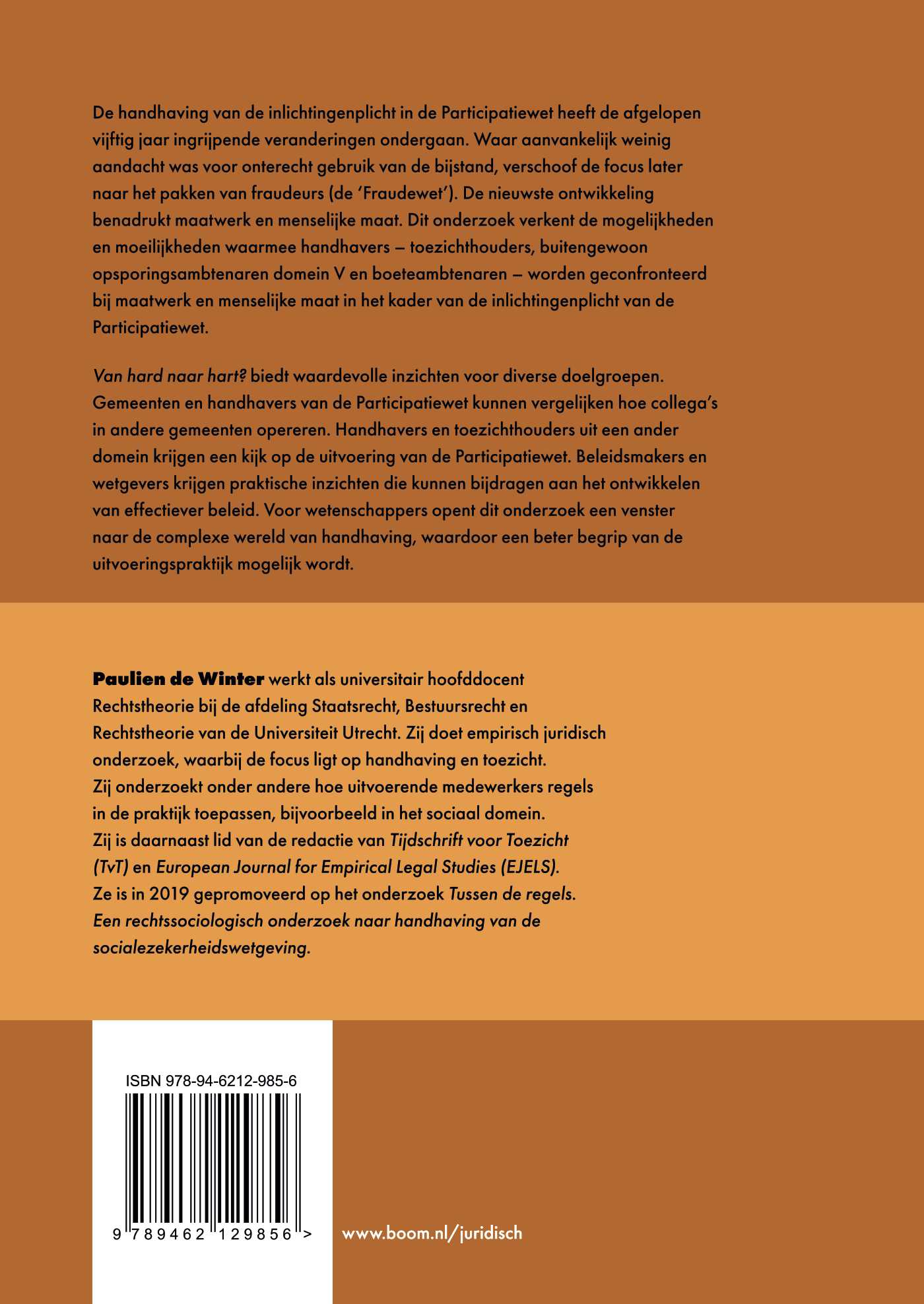 Van hard naar hart? biedt waardevolle inzichten voor diverse doelgroepen. Gemeenten en handhavers van de Participatiewet kunnen vergelijken hoe collega's in andere gemeenten opereren, terwijl handhavers en toezichthouders uit een ander domein een kijk krijgen op de uitvoering van de Participatiewet. Beleidsmakers en wetgevers krijgen praktische inzichten die kunnen bijdragen aan het ontwikkelen van effectiever beleid. Voor wetenschappers opent dit onderzoek een venster naar de complexe wereld van handhaving, waardoor een beter begrip van de uitvoeringspraktijk mogelijk wordt.