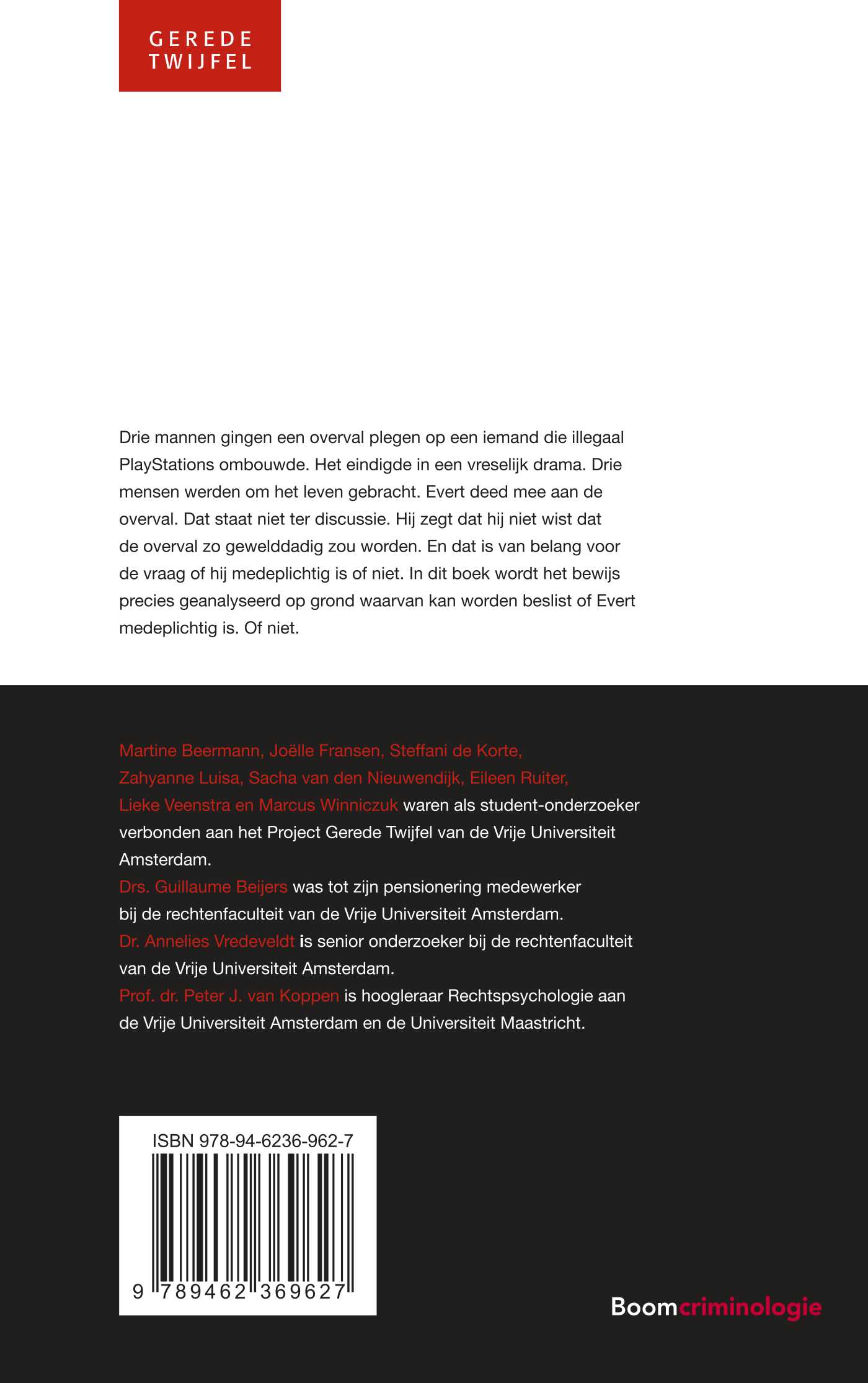 Drie mannen gingen een overval plegen op een iemand die illegaal PlayStations ombouwde. Het eindigde in een vreselijk drama. Drie mensen werden om het leven gebracht. Evert deed mee aan de overval. Dat staat niet ter discussie. Hij zegt dat hij niet wist dat de overval zo gewelddadig zou worden. En dat is van belang voor de vraag of hij medeplichtig is of niet. In dit boek wordt het bewijs precies geanalyseerd op grond waarvan kan worden beslist of Evert medeplichtig is. Of niet.