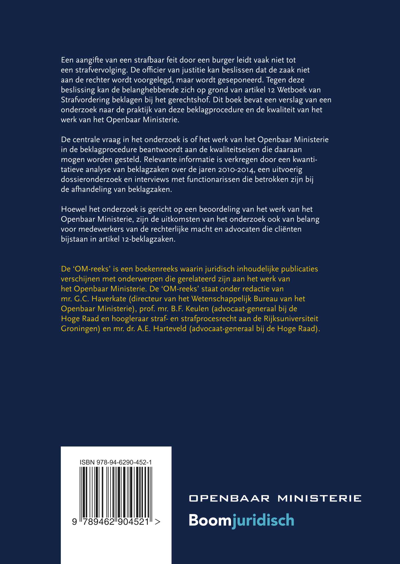 De centrale vraag in het onderzoek is of het werk van het Openbaar Ministerie in de beklagprocedure beantwoordt aan de kwaliteitseisen die daaraan mogen worden gesteld. Relevante informatie is verkregen door een kwantitatieve analyse van beklagzaken over de jaren 2010-2014, een uitvoerig dossieronderzoek en interviews met functionarissen die betrokken zijn bij de afhandeling van beklagzaken.
