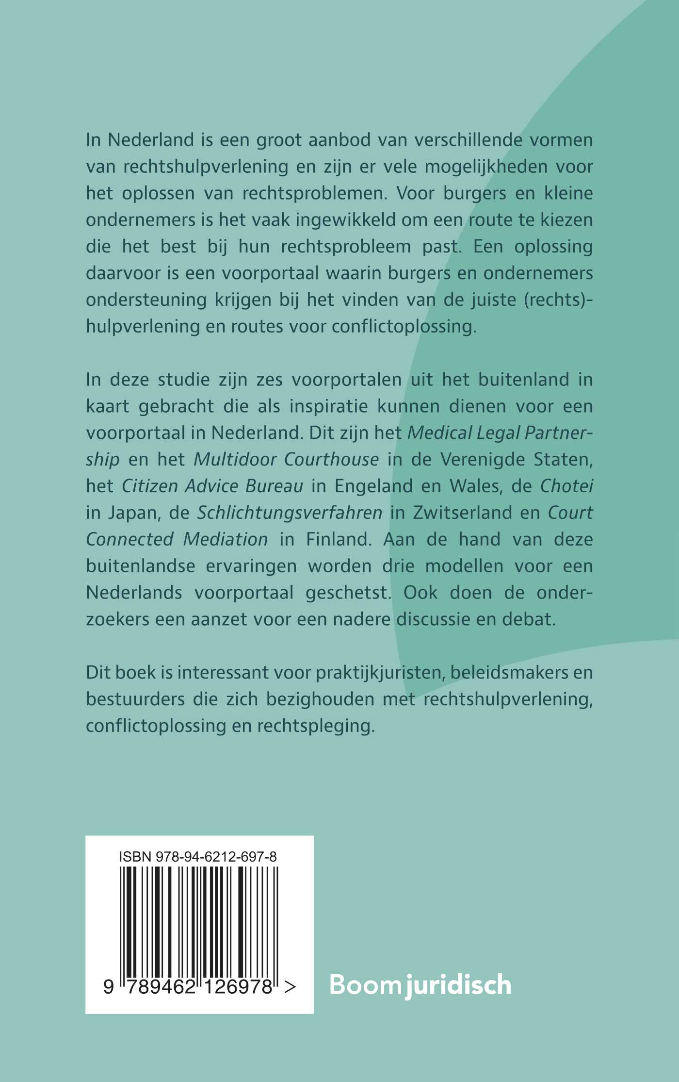 In deze studie zijn zes voorportalen uit het buitenland in kaart gebracht die als inspiratie kunnen dienen voor een voor portaal in Nederland. Dit zijn het Medical Legal Partnership en het Multidoor Courthouse in de Verenigde Staten, het Citizen Advice Bureau in Engeland en Wales, de Chotei in Japan, de Schlichtungsverfahren in Zwitserland en Court Connected Mediation in Finland. Aan de hand van deze buitenlandse ervaringen worden drie modellen voor een Nederlands voorportaal geschetst. Ook doen de onderzoekers een aanzet voor een nadere discussie en debat.