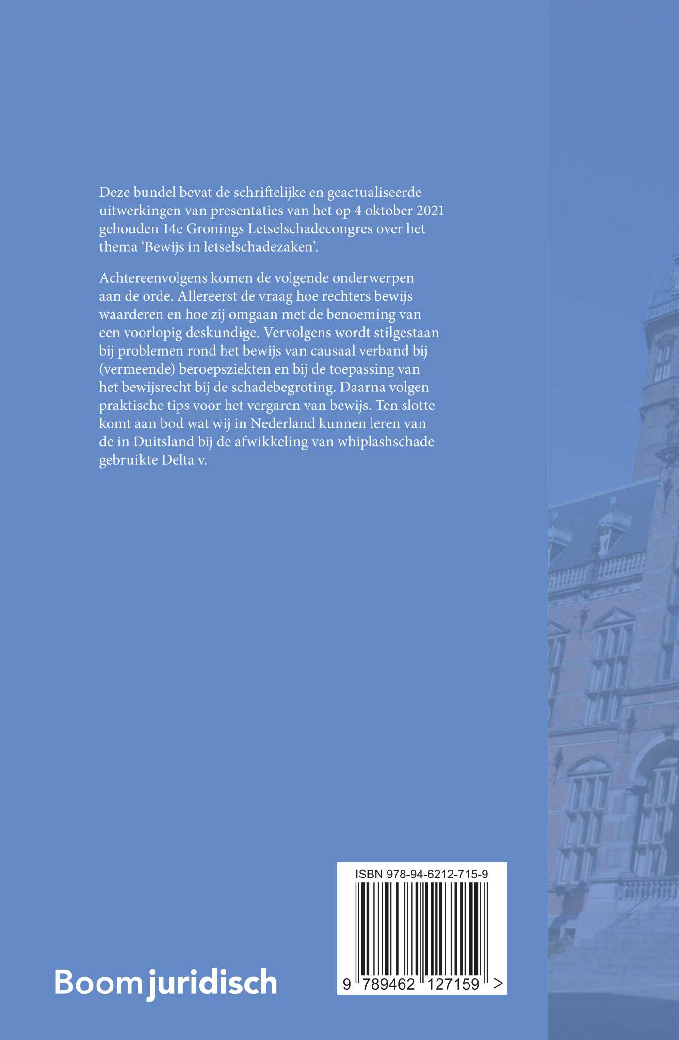 Deze bundel bevat de schriftelijke en geactualiseerde uitwerkingen van presentaties van het op 4 oktober 2021 gehouden 14e Gronings Letselschadecongres over het thema ‘Bewijs in letselschadezaken’.