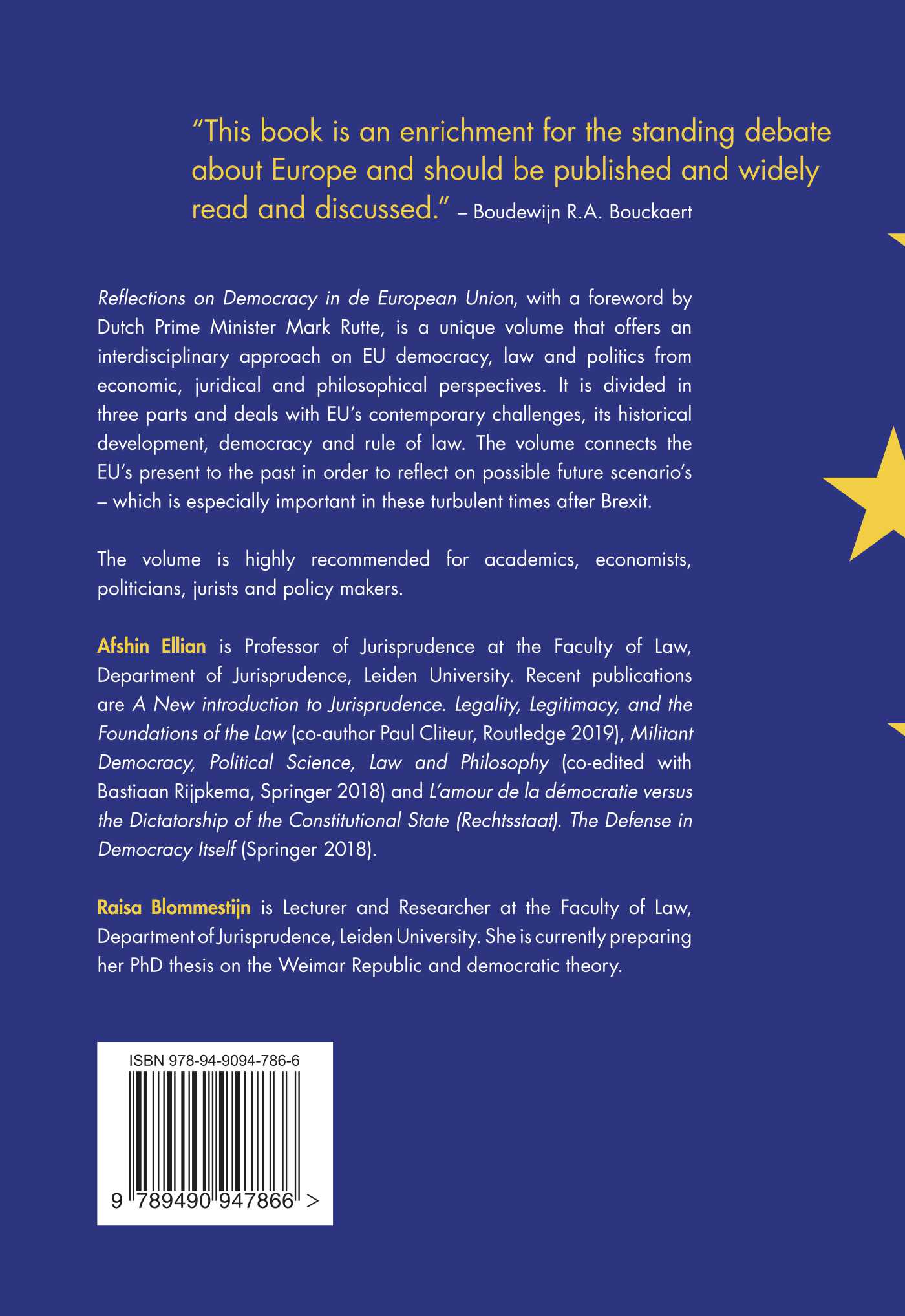 Reflections on Democracy in the European Union, with a foreword by Dutch Prime Minister Mark Rutte, is a unique volume that offers an interdisciplinary approach on EU democracy, law and politics from economic, juridical and philosophical perspectives. It is divided in three parts and deals with EU’s contemporary challenges, its historical development, democracy and rule of law. The volume connects the EU’s present to the past in order to reflect on possible future scenario’s – which is especially important in these turbulent times after Brexit.