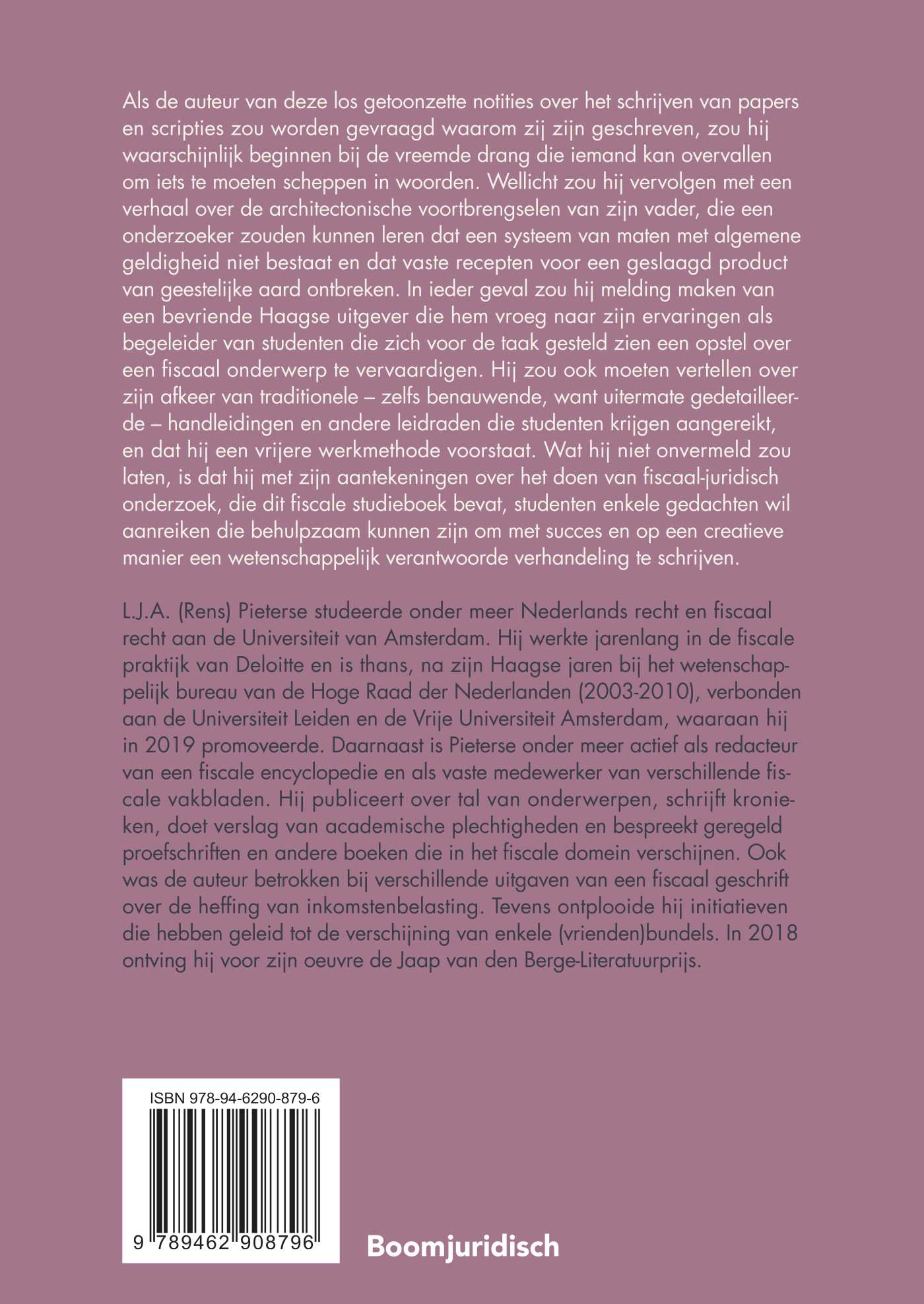 Als de auteur van deze los getoonzette notities over het schrijven van papers en scripties zou worden gevraagd waarom zij zijn geschreven, zou hij waarschijnlijk beginnen bij de vreemde drang die iemand kan overvallen om iets te moeten scheppen in woorden. Wellicht zou hij vervolgen met een verhaal over de architectonische voortbrengselen van zijn vader, die een onderzoeker zouden kunnen leren dat een systeem van maten met algemene geldigheid niet bestaat en dat vaste recepten voor een geslaagd product van geestelijke aard ontbreken. In ieder geval zou hij melding maken van een bevriende Haagse uitgever die hem vroeg naar zijn ervaringen als begeleider van studenten die zich voor de taak gesteld zien een opstel over een fiscaal onderwerp te vervaardigen. Hij zou ook moeten vertellen over zijn afkeer van traditionele – zelfs benauwende, want uitermate gedetailleerde – handleidingen en andere leidraden die studenten krijgen aangereikt, en dat hij een vrijere werkmethode voorstaat. Wat hij niet onvermeld zou laten, is dat hij met zijn aantekeningen over het doen van fiscaal-juridisch onderzoek, die dit fiscale studieboek bevat, studenten enkele gedachten wil aanreiken die behulpzaam kunnen zijn om met succes en op een creatieve manier een wetenschappelijk verantwoorde verhandeling te schrijven.