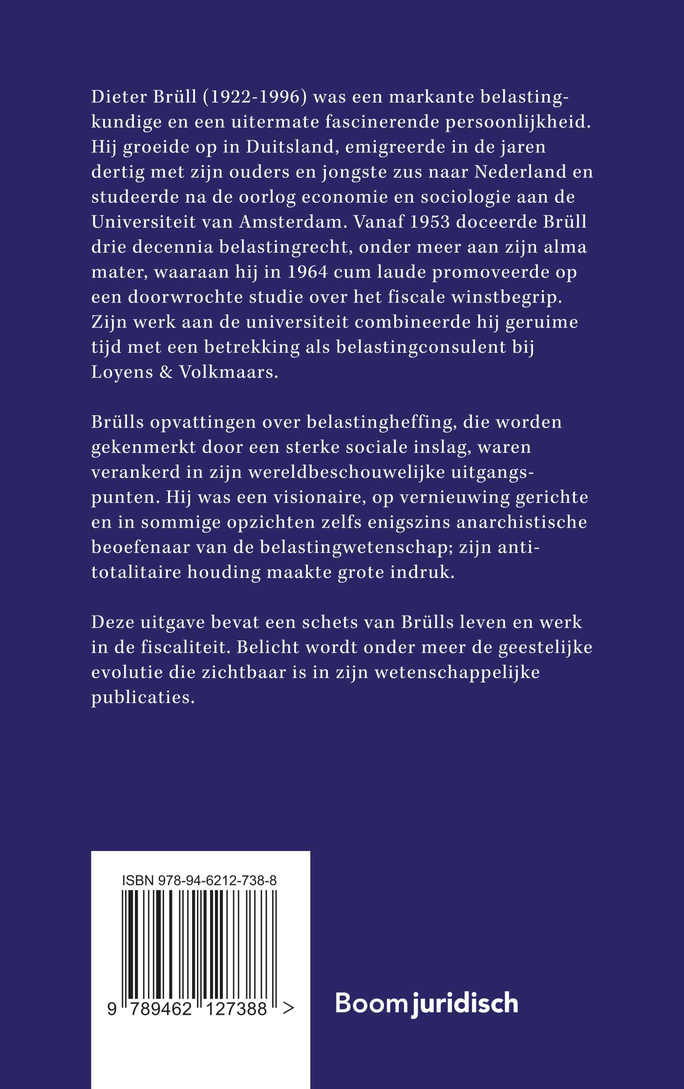 Dieter Brüll (1922-1996) was een markante belastingkundige en een uitermate fascinerende persoonlijkheid. Hij groeide op in Duitsland, emigreerde in de jaren dertig met zijn ouders en jongste zus naar Nederland en studeerde na de oorlog economie en sociologie aan de Universiteit van Amsterdam. Vanaf 1953 doceerde Brüll drie decennia belastingrecht, onder meer aan zijn alma mater, waaraan hij in 1964 cum laude promoveerde op een doorwrochte studie over het fiscale winstbegrip. Zijn werk aan de universiteit combineerde hij geruime tijd met een betrekking als belastingconsulent bij Loyens & Volkmaars.