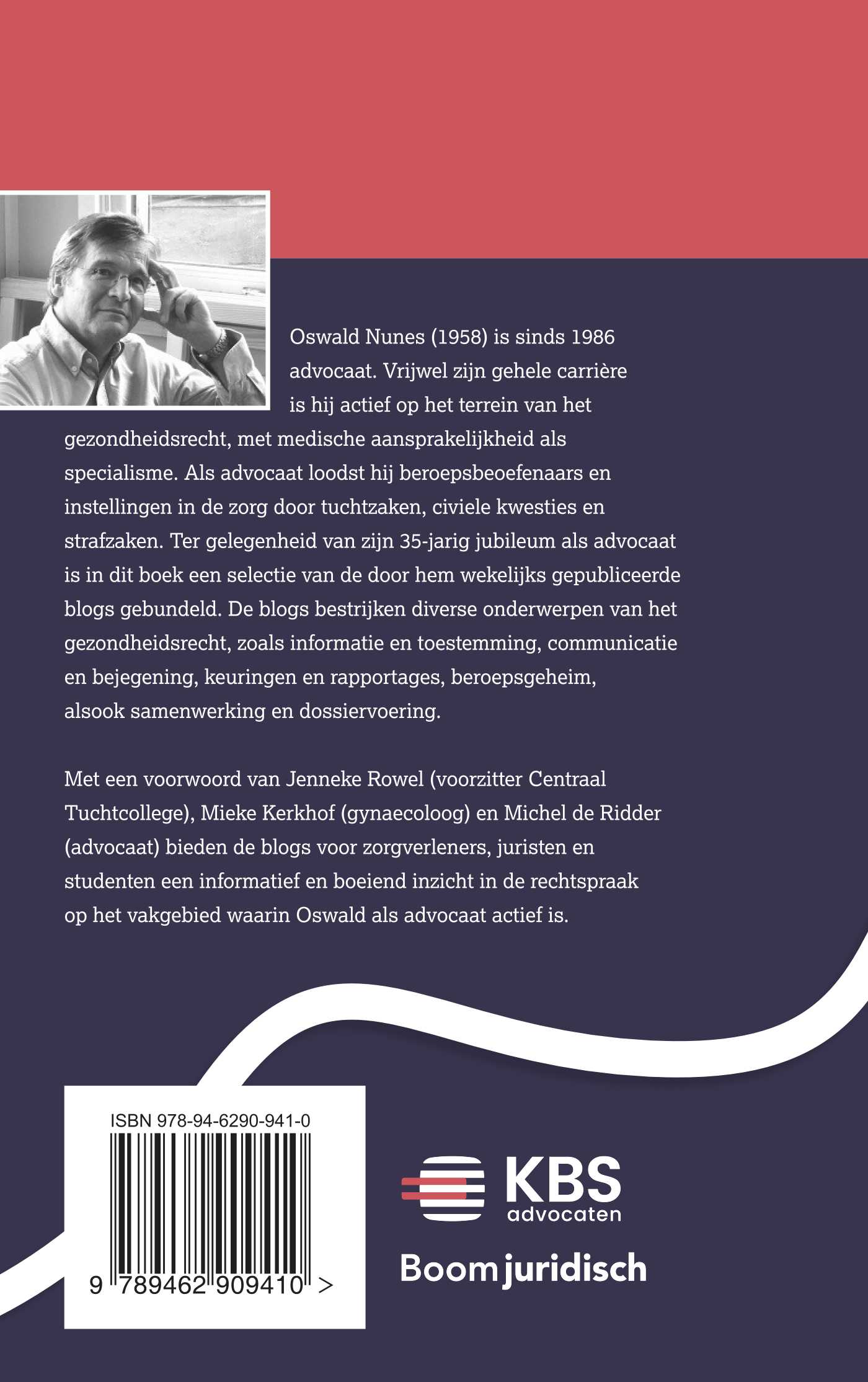 Ter gelegenheid van zijn 35-jarig jubileum als advocaat is in dit boek een selectie van de door hem wekelijks gepubliceerde blogs gebundeld. De blogs bestrijken diverse onderwerpen van het gezondheidsrecht, zoals informatie en toestemming, communicatie en bejegening, keuringen en rapportages, beroepsgeheim, alsook samenwerking en dossiervoering.