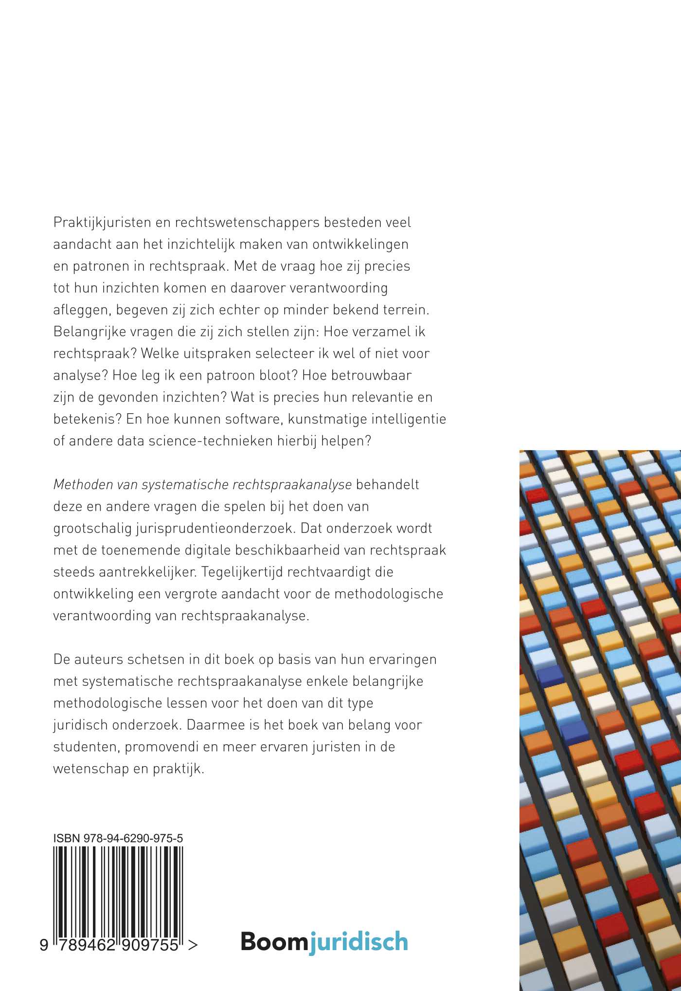 Methoden van systematische rechtspraakanalyse behandelt deze en andere vragen die spelen bij het doen van grootschalig jurisprudentieonderzoek. Dat onderzoek wordt met de toenemende digitale beschikbaarheid van rechtspraak steeds aantrekkelijker. Tegelijkertijd rechtvaardigt die ontwikkeling een vergrote aandacht voor de methodologische verantwoording van rechtspraakanalyse.