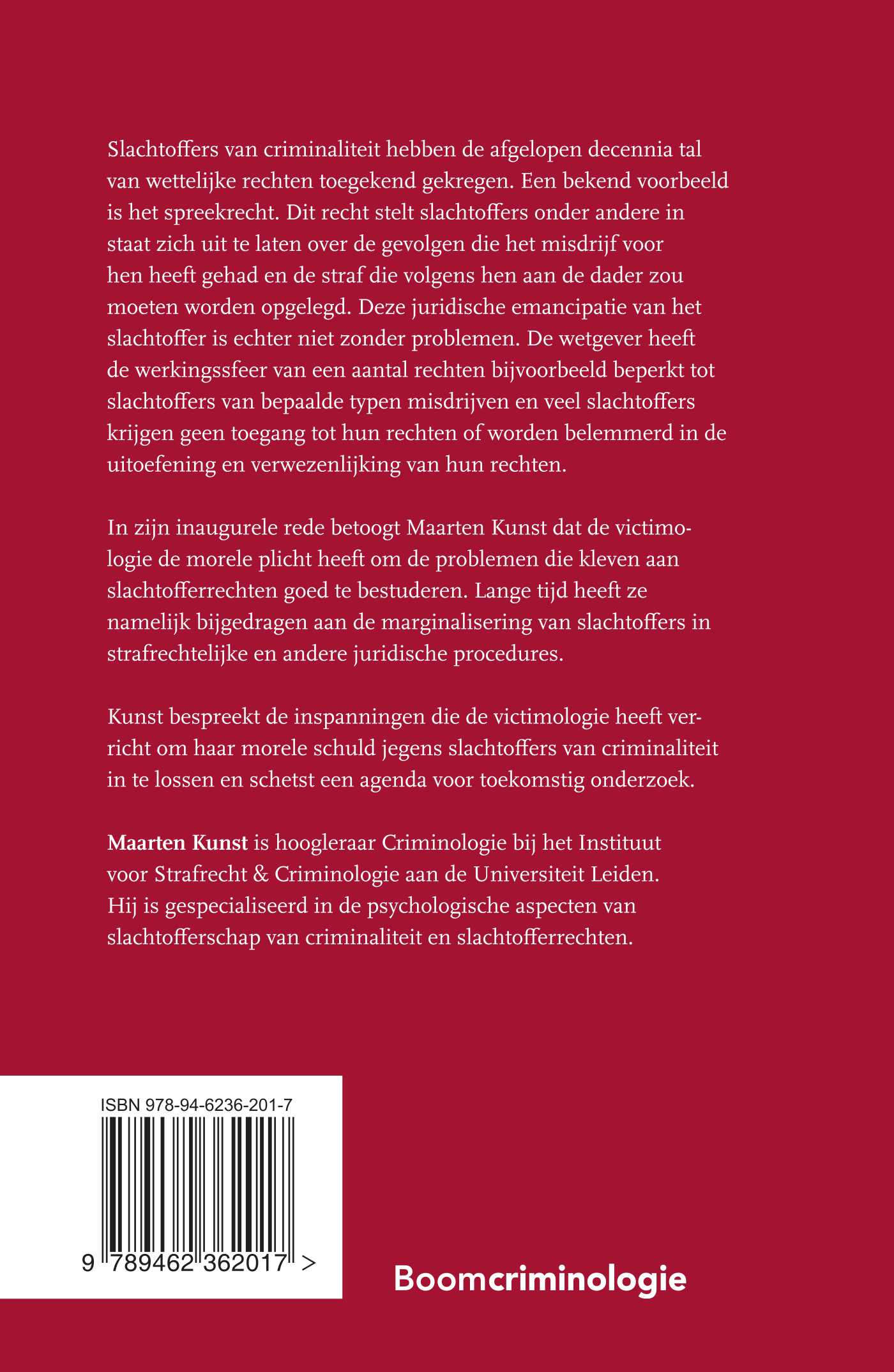 In zijn inaugurele rede betoogt Maarten Kunst dat de victimologie de morele plicht heeft om de problemen die kleven aan slachtofferrechten goed te bestuderen. Lange tijd heeft ze namelijk bijgedragen aan de marginalisering van slachtoffers in strafrechtelijke en andere juridische procedures.