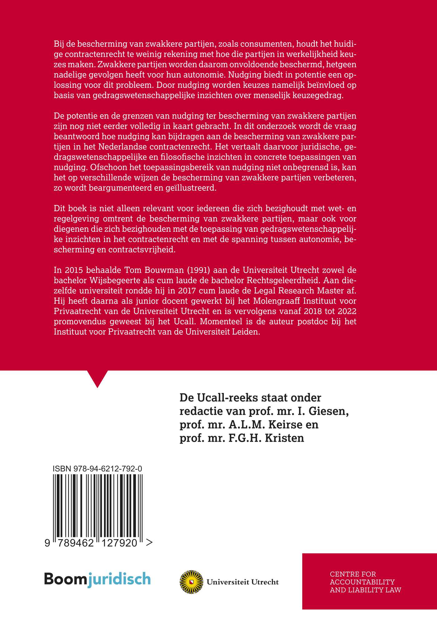 De potentie en de grenzen van nudging ter bescherming van zwakkere partijen zijn nog niet eerder volledig in kaart gebracht. In dit onderzoek wordt de vraag beantwoord hoe nudging kan bijdragen aan de bescherming van zwakkere partijen in het Nederlandse contractenrecht. Het vertaalt daarvoor juridische, gedragswetenschappelijke en filosofische inzichten in concrete toepassingen van nudging. Ofschoon het toepassingsbereik van nudging niet onbegrensd is, kan het op verschillende wijzen de bescherming van zwakkere partijen verbeteren, zo wordt beargumenteerd en geïllustreerd.