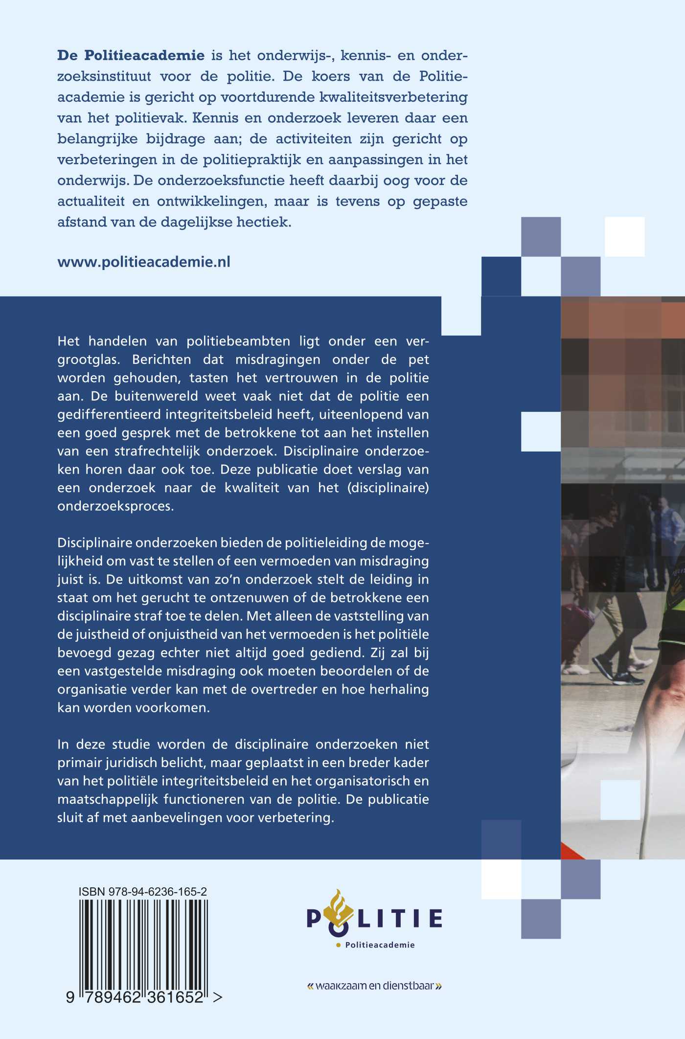 Disciplinaire onderzoeken horen daar ook toe. Deze publicatie doet verslag van een onderzoek naar de kwaliteit van het (disciplinaire) onderzoeksproces. Disciplinaire onderzoeken bieden de politieleiding de mogelijkheid om vast te stellen of een vermoeden van misdraging juist is. De uitkomst van zo’n onderzoek stelt de leiding in staat om het gerucht te ontzenuwen of de betrokkene een disciplinaire straf toe te delen. Met alleen de vaststelling van de juistheid of onjuistheid van het vermoeden is het politiële bevoegd gezag echter niet altijd goed gediend. Zij zal bij een vastgestelde misdraging ook moeten beoordelen of de organisatie verder kan met de overtreder en hoe herhaling kan worden voorkomen.