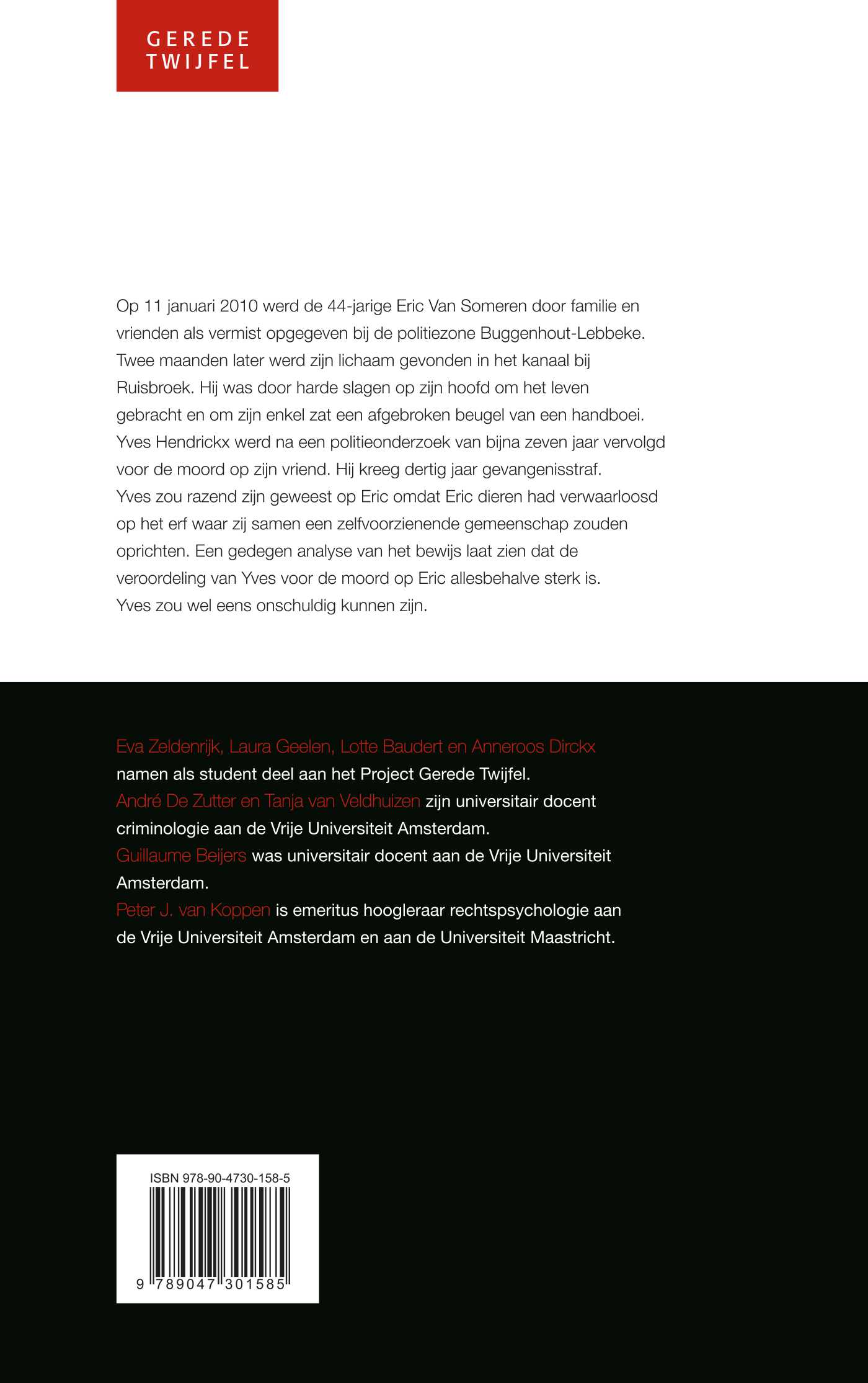 Op 11 januari 2010 werd de 44-jarige Eric Van Someren door familie en vrienden als vermist opgegeven bij de politiezone Buggenhout-Lebbeke. Twee maanden later werd zijn lichaam gevonden in het kanaal bij Ruisbroek. Hij was door harde slagen op zijn hoofd om het leven gebracht en om zijn enkel zat een afgebroken beugel van een handboei. Yves Hendrickx werd na een politieonderzoek van bijna zeven jaar vervolgd voor de moord op zijn vriend. Hij kreeg dertig jaar gevangenisstraf. Yves zou razend zijn geweest op Eric omdat Eric dieren had verwaarloosd op het erf waar zij samen een zelfvoorzienende gemeenschap zouden oprichten. Een gedegen analyse van het bewijs laat zien dat de veroordeling van Yves voor de moord op Eric allesbehalve sterk is. Yves zou wel eens onschuldig kunnen zijn.