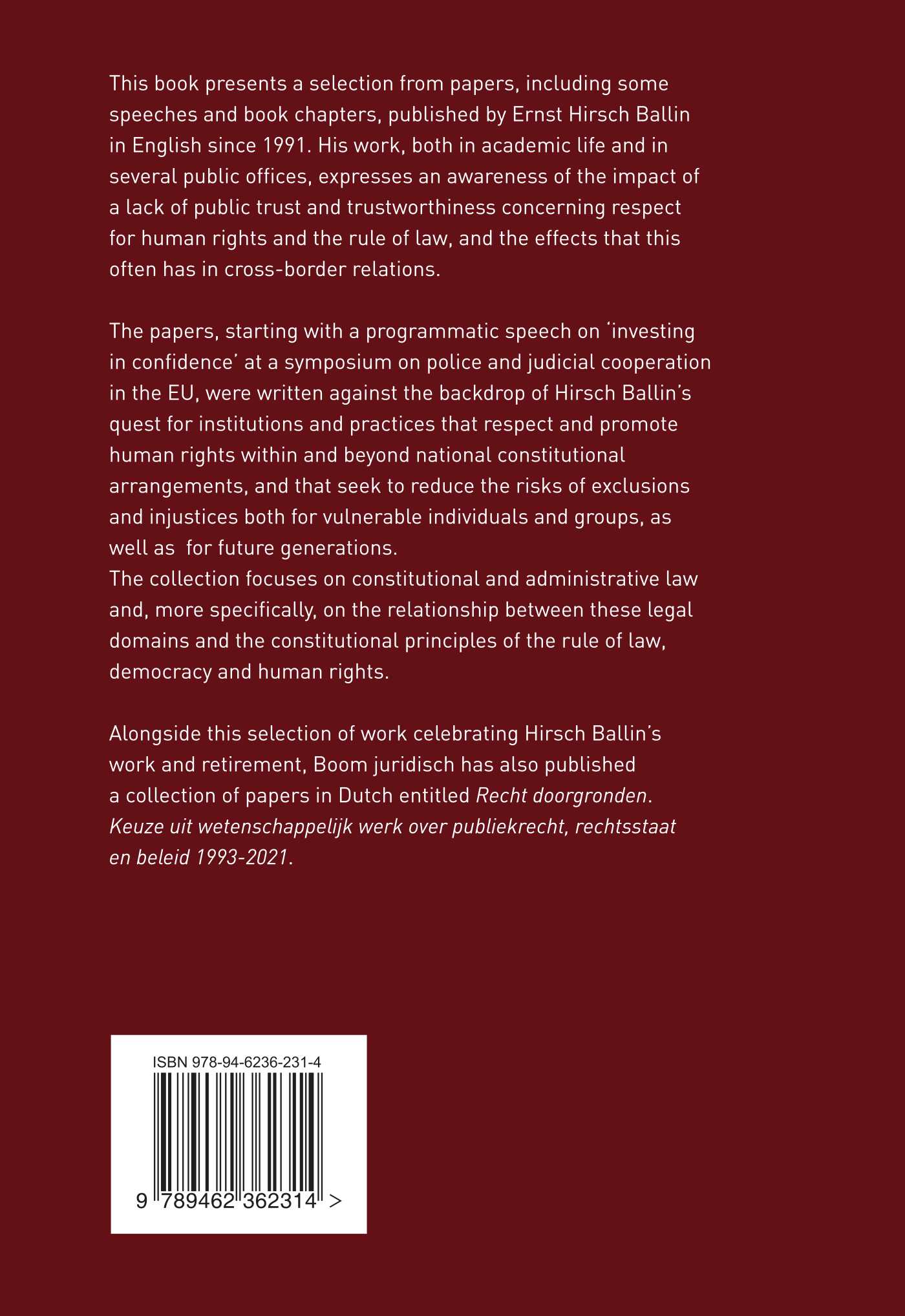 This book presents a selection from papers, including some speeches and book chapters, published by Ernst Hirsch Ballin in English since 1991. His work, both in academic life and in several public offices, expresses an awareness of the impact of a lack of public trust and trustworthiness concerning respect for human rights and the rule of law, and the effects that this often has in cross-border relations.