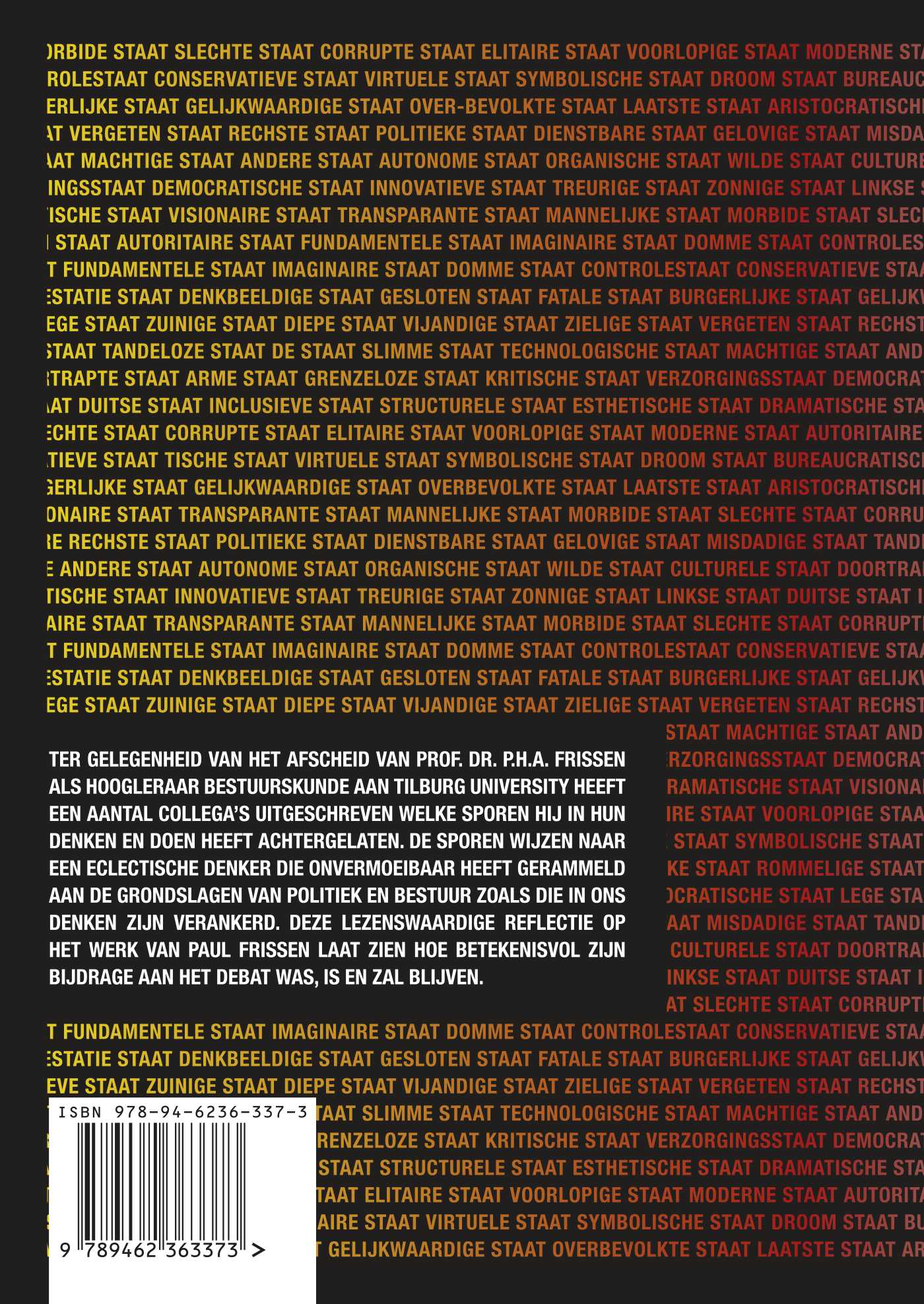 Ter gelegenheid van het afscheid van Prof. Dr. P.H.A. Frissen als hoogleraar bestuurskunde aan Tilburg University heeft een aantal collega's uitgeschreven welke sporen hij in hun denken en doen heeft achtergelaten. De sporen wijzen naar een eclectische denker die onvermoeibaar heeft gerammeld aan de grondslagen van politiek en bestuur zoals die in ons denken zijn verankerd. Deze levenswaardige reflectie op het werk van Paul Frissen laat zien hoe betekenisvol zijn bijdrage aan het debat was, is en zal blijven.