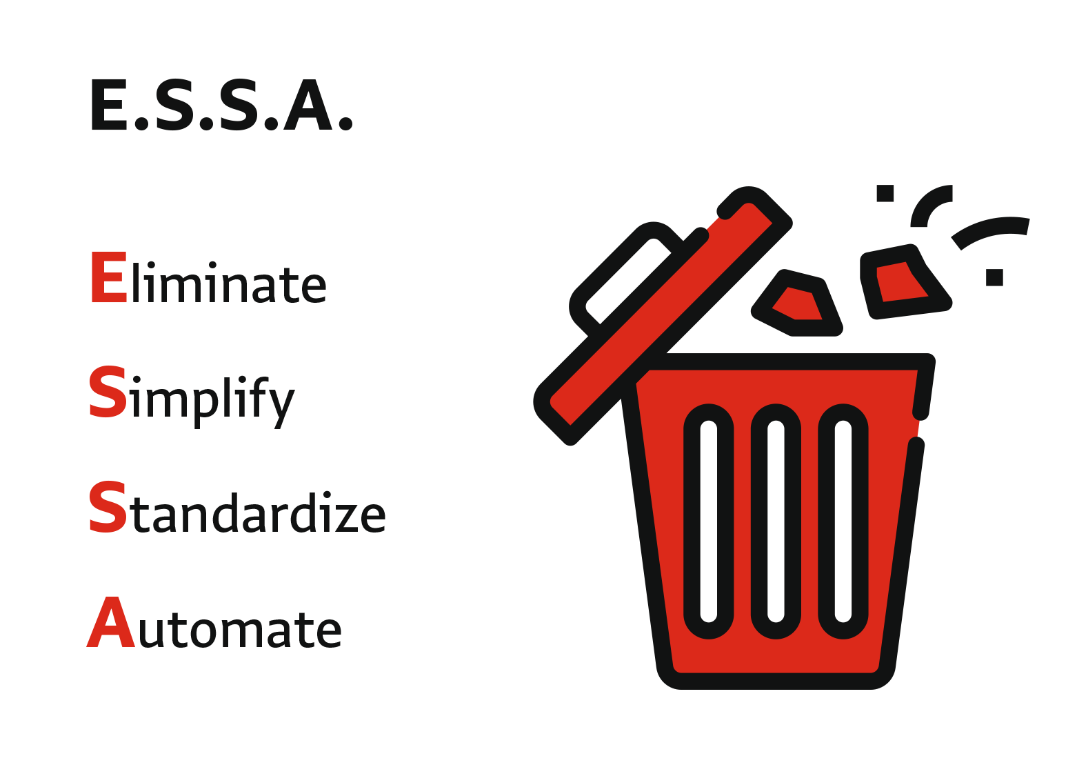 Hoe reduceer je complexiteit? Door ESSA toe te passen, volgens De Bono. Elimineer, vereenvoudig, standaardiseer en automatiseer. Maar let op: wel in deze volgorde! Je zult verrast zijn hoe vaak elimineren de oplossing is!