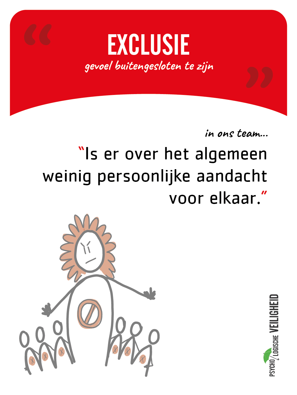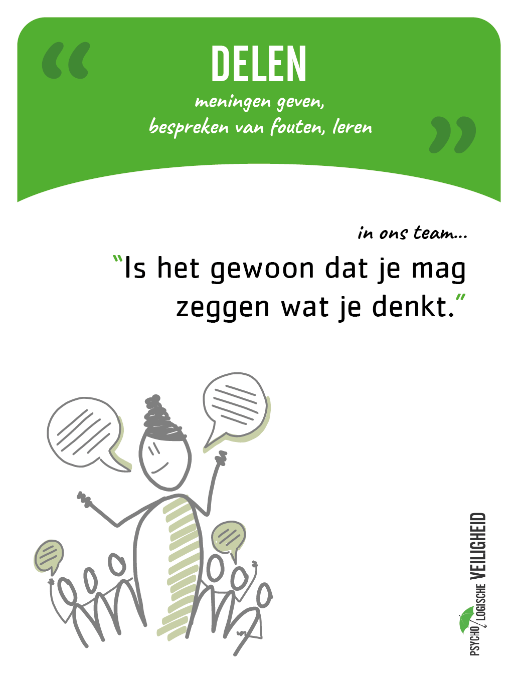 Voel jij je voldoende thuis? Durf jij je mening met anderen te delen? Fouten te bespreken? Doe je 100 procent mee met teamprestaties? Heb je de moed om gangbare opvattingen ter discussie te stellen? Ongeschreven regels te doorbreken? Voel jij je verantwoordelijk voor een positieve sfeer in je werkomgeving?