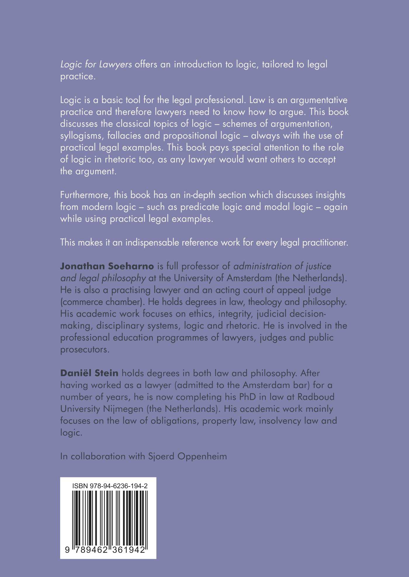Furthermore, this book has an in-depth section which discusses insights from modern logic – such as predicate logic and modal logic – again while using practical legal examples.