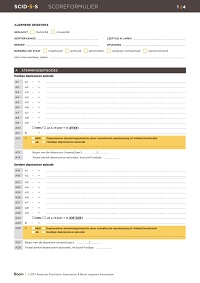 Het SCID-5-S Interview (voorheen SCID-I) leidt de clinicus stap voor stap door het diagnostisch proces waarmee alle belangrijke DSM-5-syndroomstoornissen kunnen worden vastgesteld.